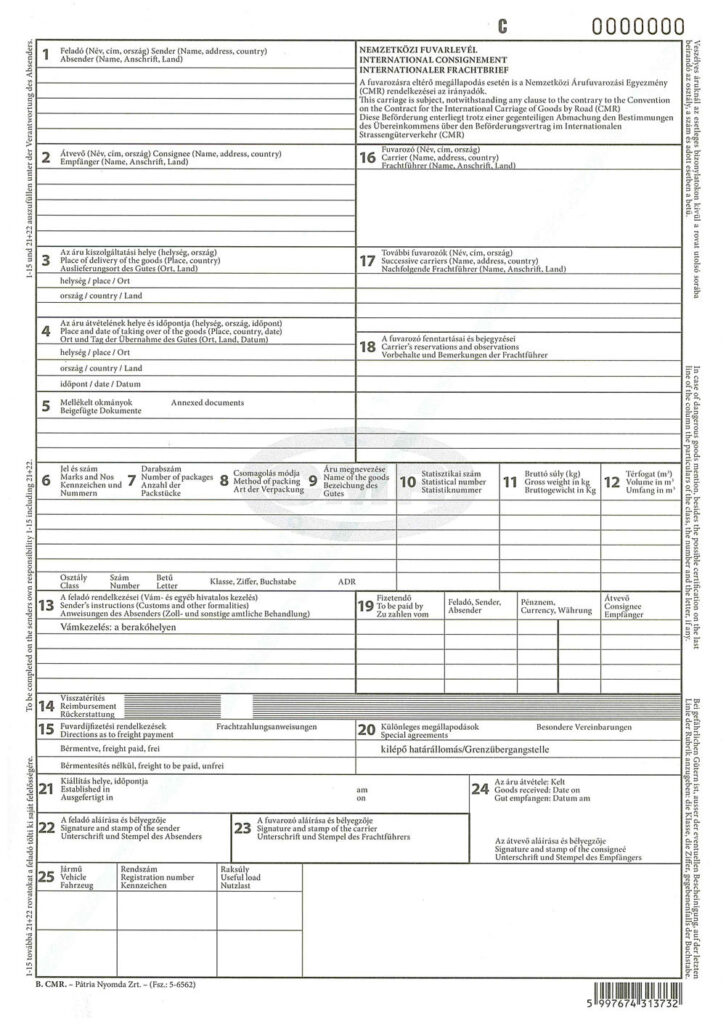 CMR – Egyezmény a Nemzetközi Közúti Árufuvarozási Szerződésről